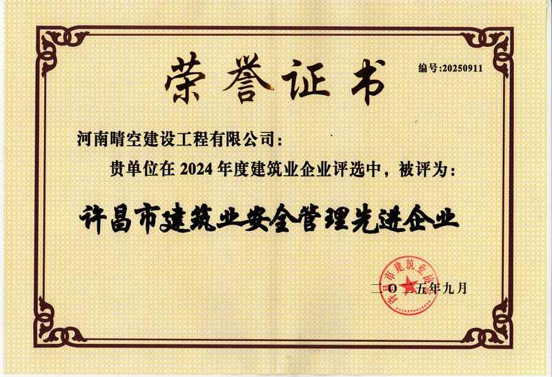 2025年许昌市建筑业先进企业